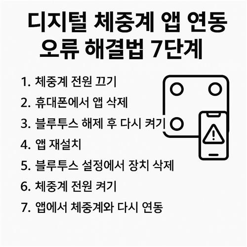 가정용 디지털 체중계를 스마트폰 앱과 연동하려고 하면 연결이 끊기거나 수치가 동기화되지 않는 일이 자주 있습니다. 제조사마다 앱과 펌웨어가 달라 원인이 다양하지만, 기본 점검 순서를 지키면 대부분의 문제는 스스로 해결할 수 있습니다. 아래 7단계를 차례대로 따라 하세요. 각 단계는 실제 현장에서 빈번히 확인되는 원인을 기준으로 정리했으며, 초보자도 따라 하기 쉽도록 스크린 없이 설명을 구성했습니다. 한 단계씩 진행하면서 어디에서 실패했는지 메모해 두면 이후 고객센터 요청 시에도 큰 도움이 됩니다.