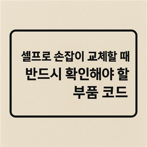 셀프로 손잡이를 교체하려면 반드시 ‘부품 코드’를 먼저 확인해야 합니다. 부품 코드는 제조사나 유통사가 부품을 구분하기 위해 붙이는 고유 식별 번호로, 같은 모양이라도 사이즈, 백셋, 키 방식 등에 따라 서로 다른 코드가 존재해요.