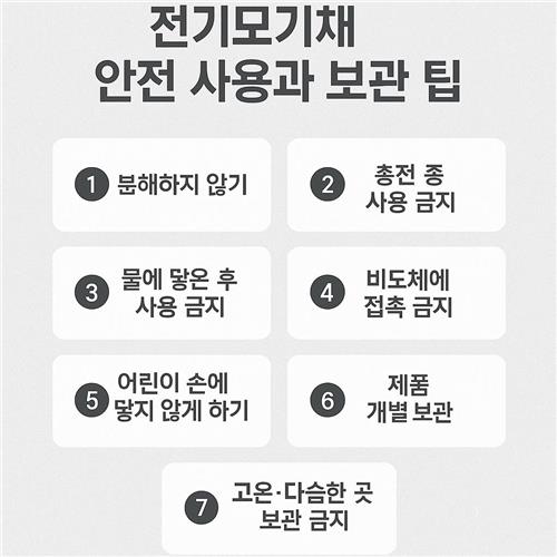 전기모기채는 여름철 모기 퇴치에 정말 유용한 도구지만, 잘못 사용할 경우 감전, 화재, 고장 등의 사고로 이어질 수 있어요. 오늘 소개한 7단계 안전 사용 팁을 기억하셔서 보다 안전하고 오래도록 사용할 수 있기를 바랍니다.